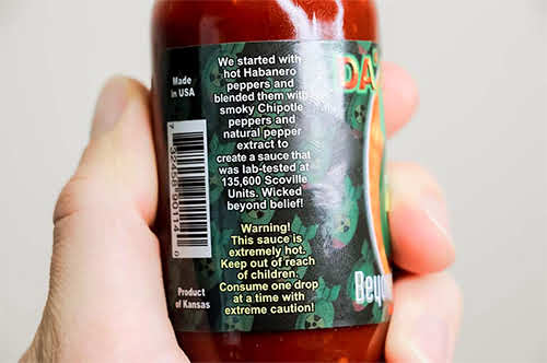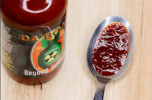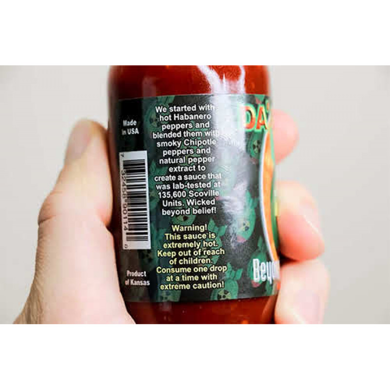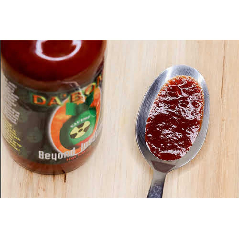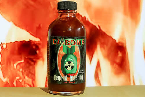 Da' Bomb — это смесь перцев хабанеро и копчёного чипотле, а также натурального экстракта перца, создающая соус жгучестью 135 600 единиц Сковилла.