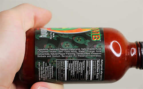 • Состав: Перец хабанеро (хабанеро, соль), пюре чипотль (чипотль, вода, соль, лимонная кислота), вода, концентрированный апельсиновый сок, натуральный ароматизатор перца, томатная паста, сорбат калия и бензоат натрия (для сохранения свежести).