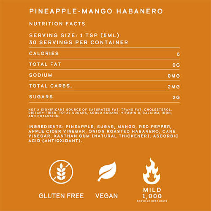 Сладкий, фруктовый и жгучий, наш острый соус с ананасом, манго и хабанеро — это сочетание тропической сладости и жгучей остроты. Если вы любите лёгкую, сладковатую остроту, вам обязательно понравится!