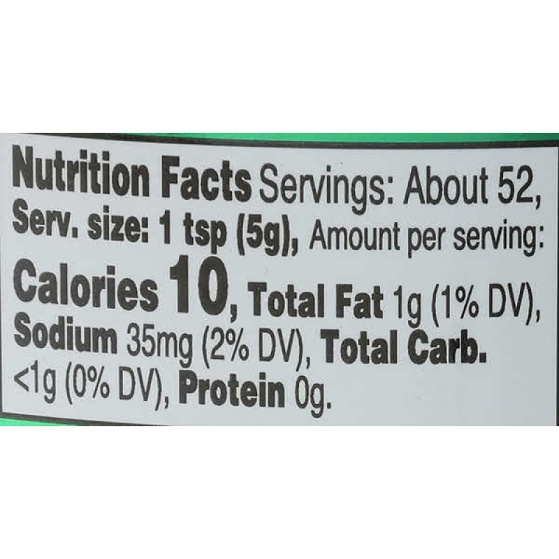 Размер порции: 1 ч. л. = 10 ккал, 1 г жира, 35 мг натрия (2% от суточной нормы)